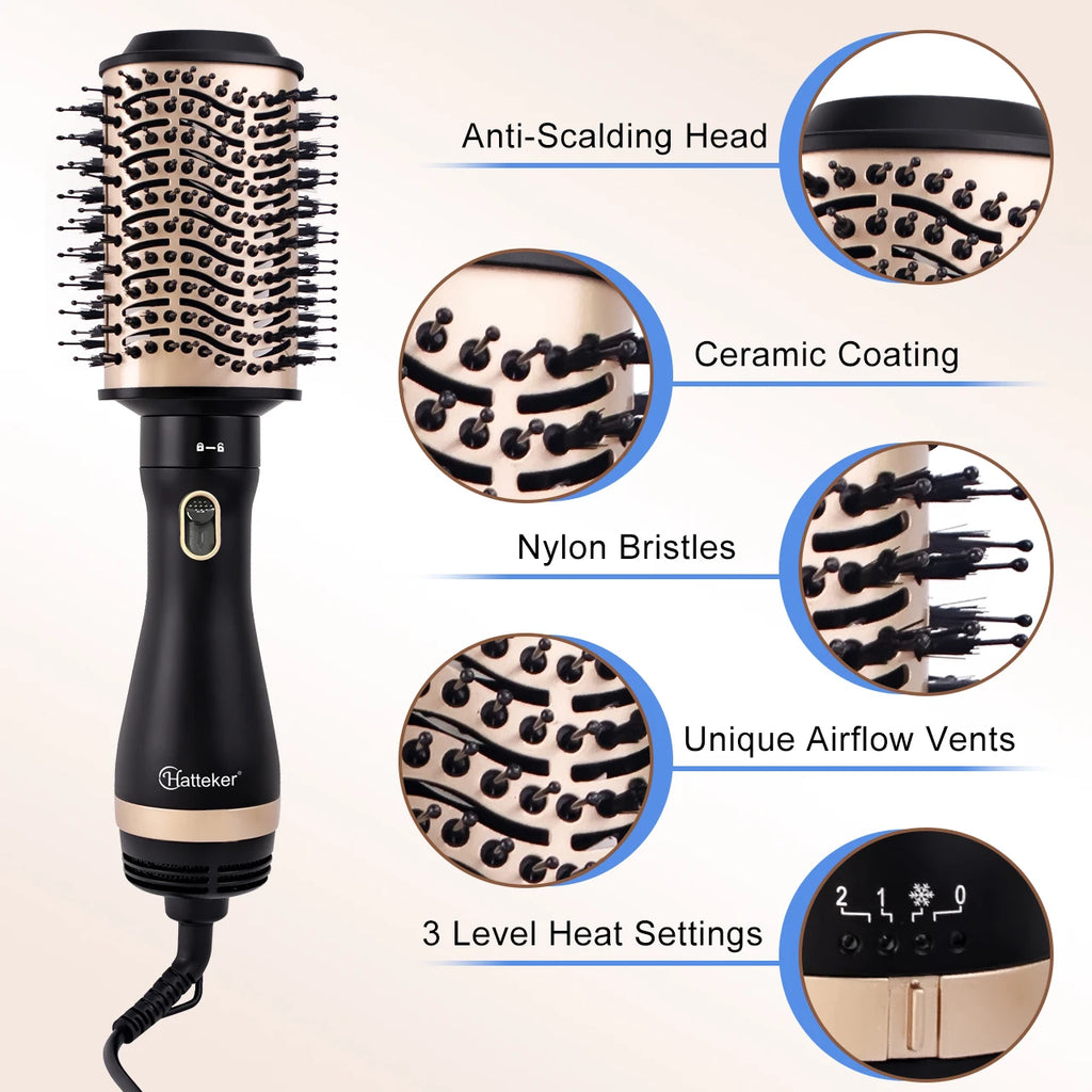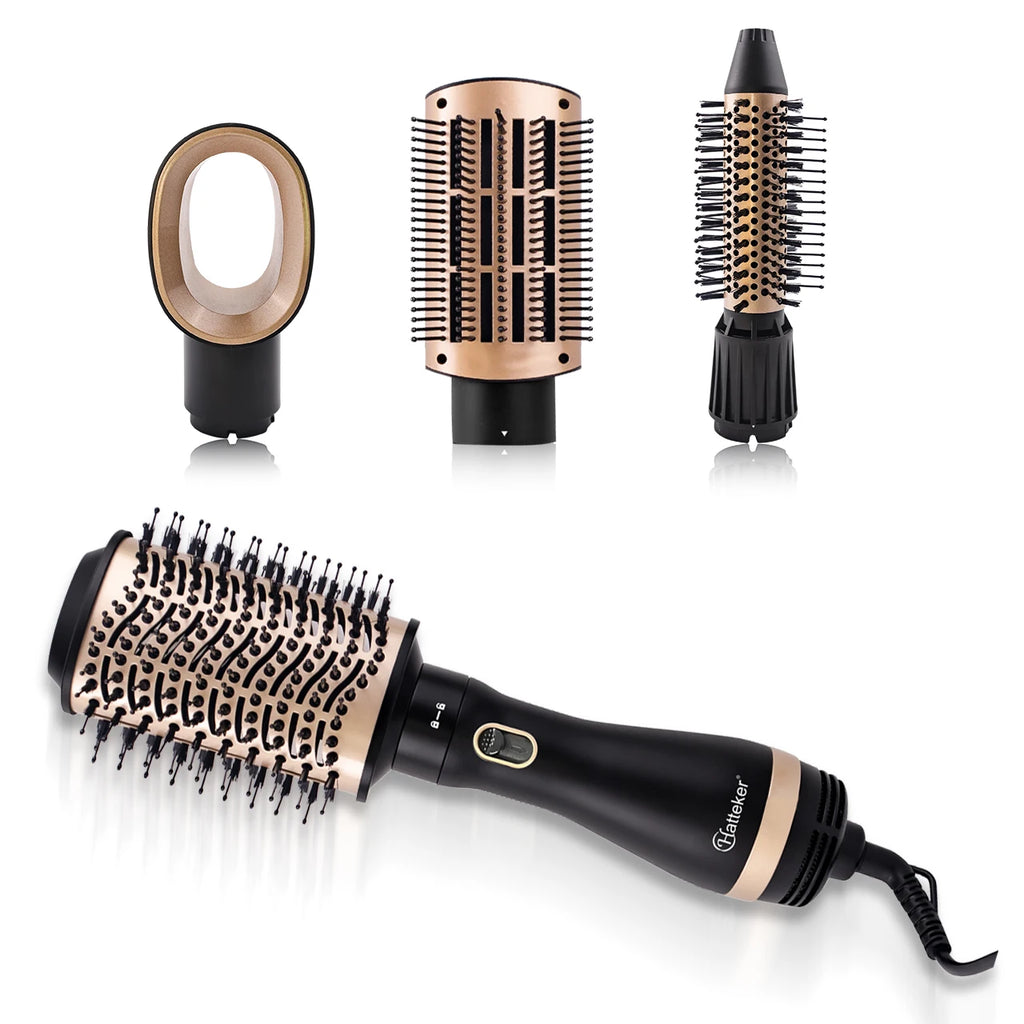 El Hatteker HT-300 4 en 1 es una herramienta multifuncional para el cuidado del cabello que combina secador, alisador, rizador y voluminizador en un solo dispositivo. Con motor DC de alta potencia y 3 configuraciones de velocidad, permite crear diferentes estilos de manera rápida y sencilla. Su diseño ergonómico y portátil lo convierte en la opción ideal para uso doméstico, viajes y salones de belleza en Chile.
