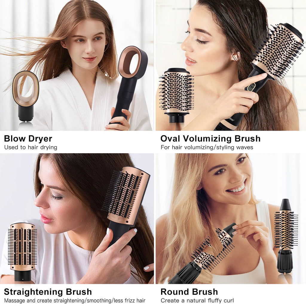 4 funciones en 1: secador, alisador, rizador y voluminizador
